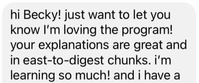 I have enjoyed this program because of the change in my mindset about food! I realize I can enjoy healthier choices and not feel deprived at all!