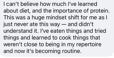 My biggest win is that I'm not craving sweets and feel satisfied at meals now. I have more energy to workout too!